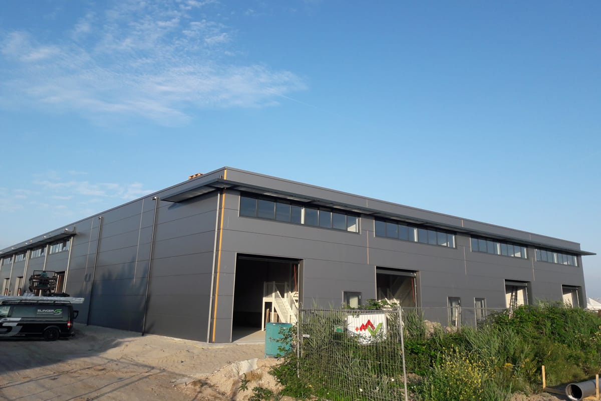 Voor een bedrijfsverzamelgebouw in Amstelveen hebben wij de gevelbekleding mogen monteren. Hierbij is gekozen voor sandwichpanelen gecombineerd met een enkelwandige golfplaat tussen de verschillende bedrijven. Het bedrijfsverzamelgebouw heeft een luxe uitstraling door de keuze voor antracietgrijze panelen. Slinger heeft in relatief korte tijd dit mooie project mogen afronden. Bent u ook op zoek naar een betrouwbare partner voor het beplaten van uw hal, loods of schuur? Neem gerust contact op met Jillis of Jan. Wij zijn u graag van dienst.